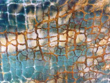 This is a fun technique that involves making sheets of glass out of powdered glass frit then allowing it to form “crackle” patterns.