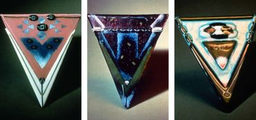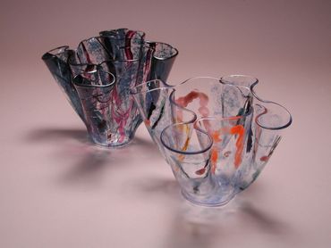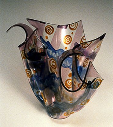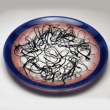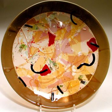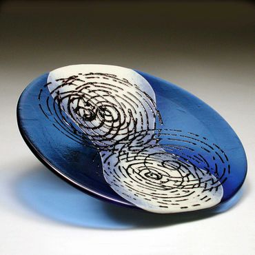 Since 1981, I have been trying to expand what can be said with kiln formed glass. These are just a few of my experiments. Some are using vitreous enamels that I developed, other are made with my Liquid Stringer material that allows one to draw with dimensional glass. Several of these are manipulated and shaped while they are at 1350 degrees inside of the kiln.